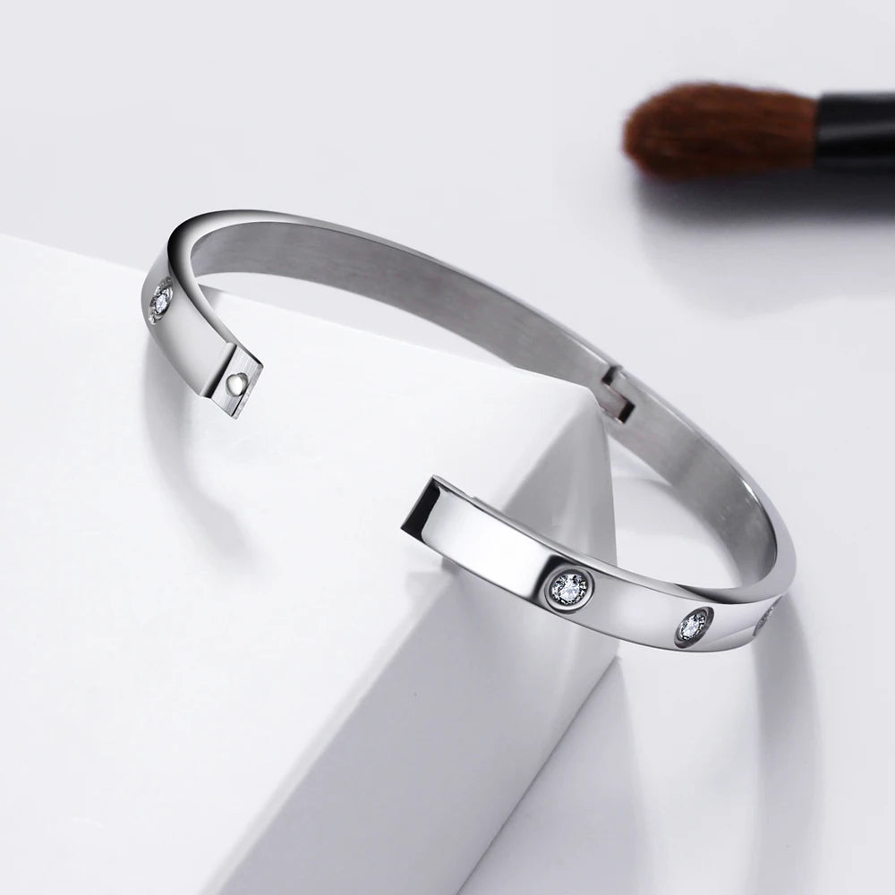 Made from premium 316L titanium steel, these bangles are resistant to tarnish, rust, and scratches, ensuring long-lasting shine and strength. The strict stainless steel craftsmanship provides a smooth finish with a modern polished look, while the cuff design allows for a comfortable, adjustable fit.